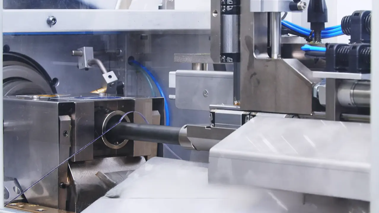 Le système de rainurage et séparation est un procédé de découpe orbitale de tubes qui utilise soit une lame rotative, soit une technologie de coupe par plaquette. Ces méthodes entaillent progressivement le tube le long d’une section circulaire de l’épaisseur de sa paroi, en l’amincissant jusqu’à ce qu’une pince sépare le segment.