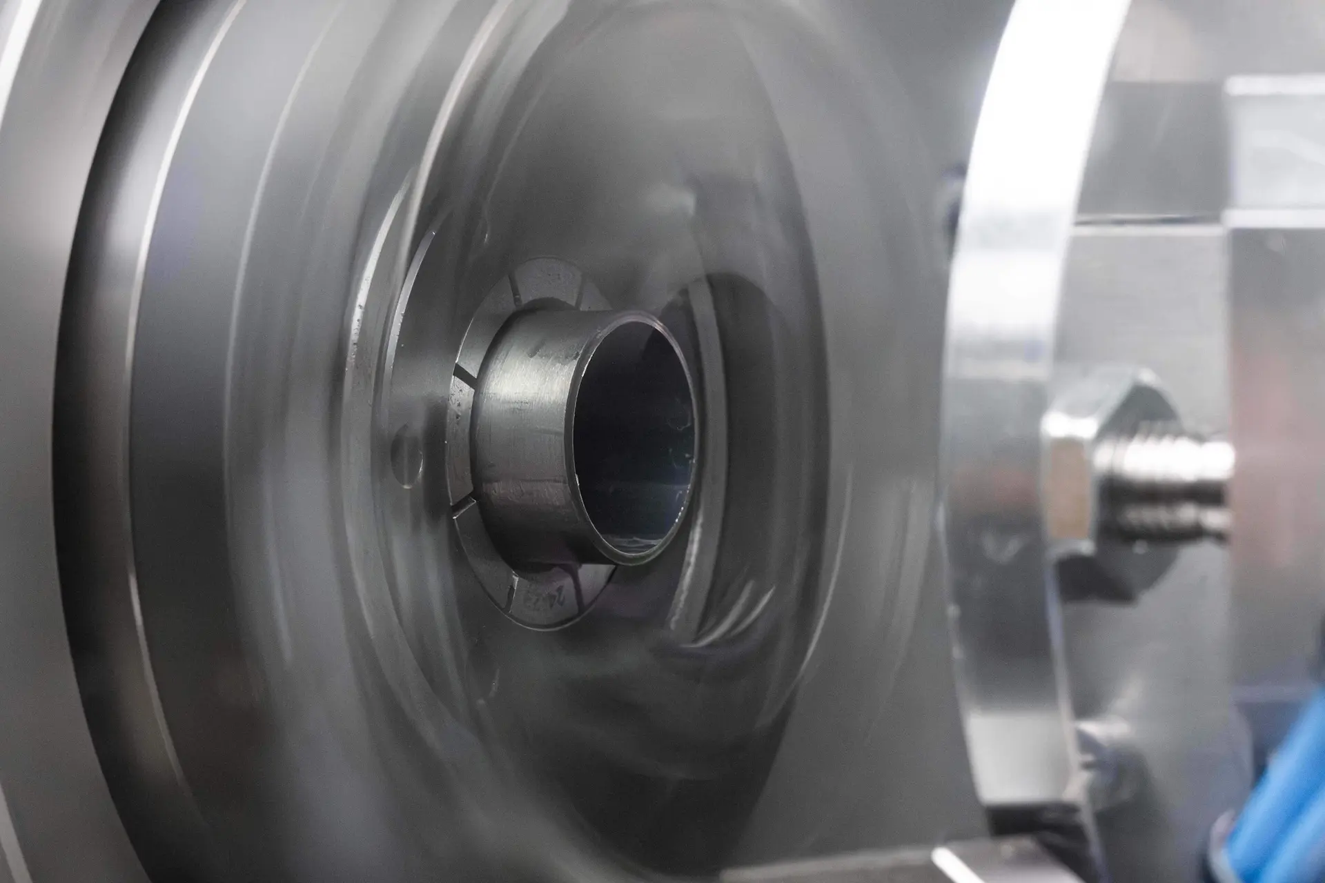 The orbital score-and-pull-apart system is engineered to address the limitations of similar orbital cutting methods that rely on engraving wheels. This process employs either a rotary blade cutter or insert-style cutting technology to gradually score the tube, thinning a circular section of its wall. Once sufficiently weakened, a clamp separates the tube cleanly. The result is a chipless, burr-free cut with perfectly smooth edges and no deformation.