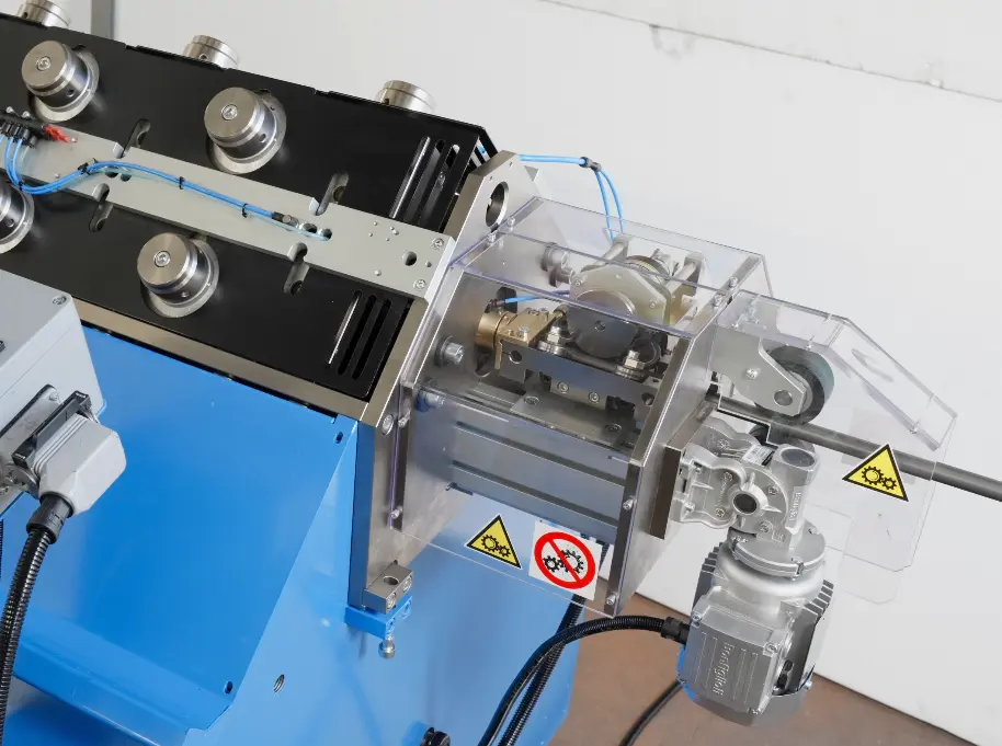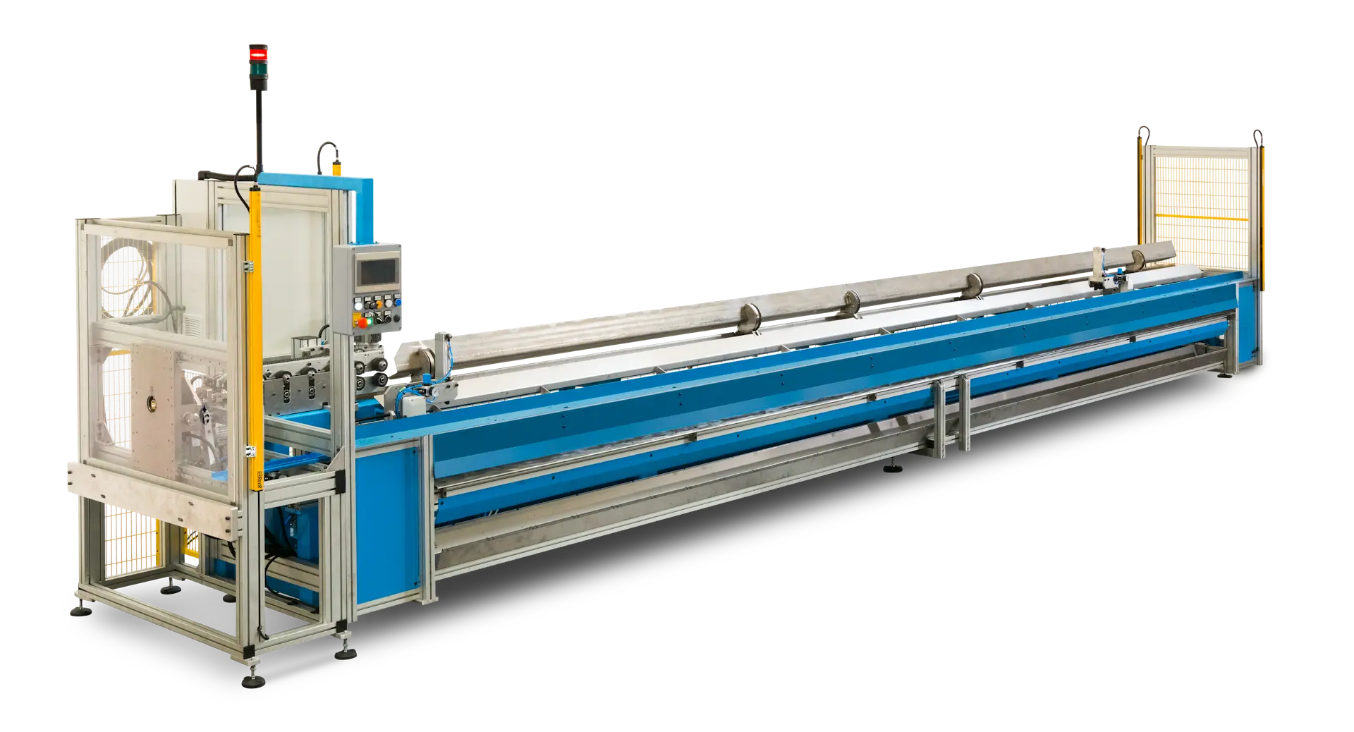 The process begins with a wheel encoder that accurately measures the tube’s length as it moves through the unit, with the data displayed in real time on the control panel.