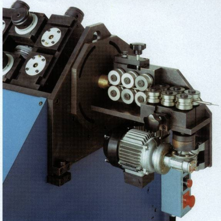 In the rolling mill with a variable roll rotational speed, there is the possibility to program the rotation speed for each pair of rolls through frequency inverters, depending on the elongation of the elements. This solution allows to set the machine for different tube materials. Five sets of program scales of roll speed are available. Each pair of rolls will have a speed corresponding to the elongation of the tube, depending on the tube material. Having control of the speed of each roll station, it is possible to match as closely as possible the elongation occurring. This means that there is less friction between the rolls and tube, and therefore less heat generated by friction. As a result, the rolls last longer and the elements exit straighter.