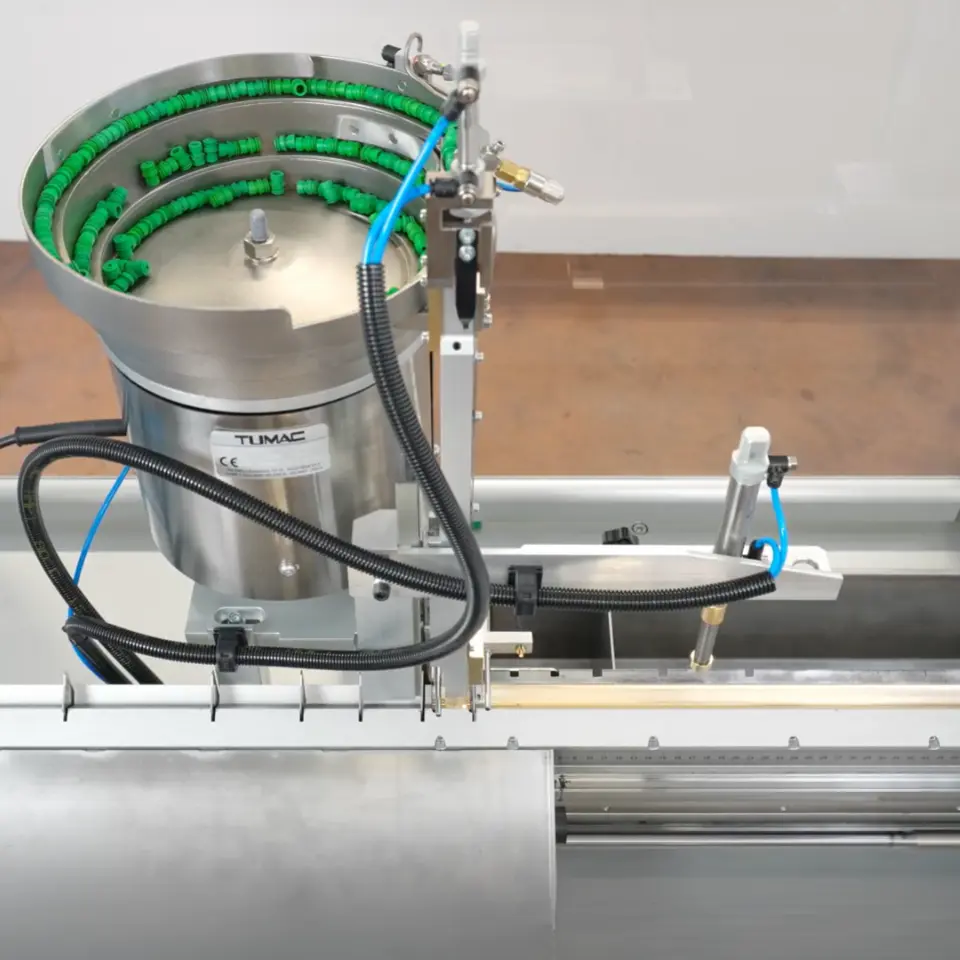 After cutting, the pin blanks are loaded into the hopper at the rear of the Cold Heading Machine. They are then fed through a sequence of progressive dies that gradually form the terminal pin ends. The Cold Heading Machine produces 7,740 pieces per hour for wire diameters between 1.57 mm (0.062″) and 2.0 mm (0.079″), and 5,160 pieces per hour for diameters between 2.1 mm (0.083″) and 3.18 mm (0.125″).