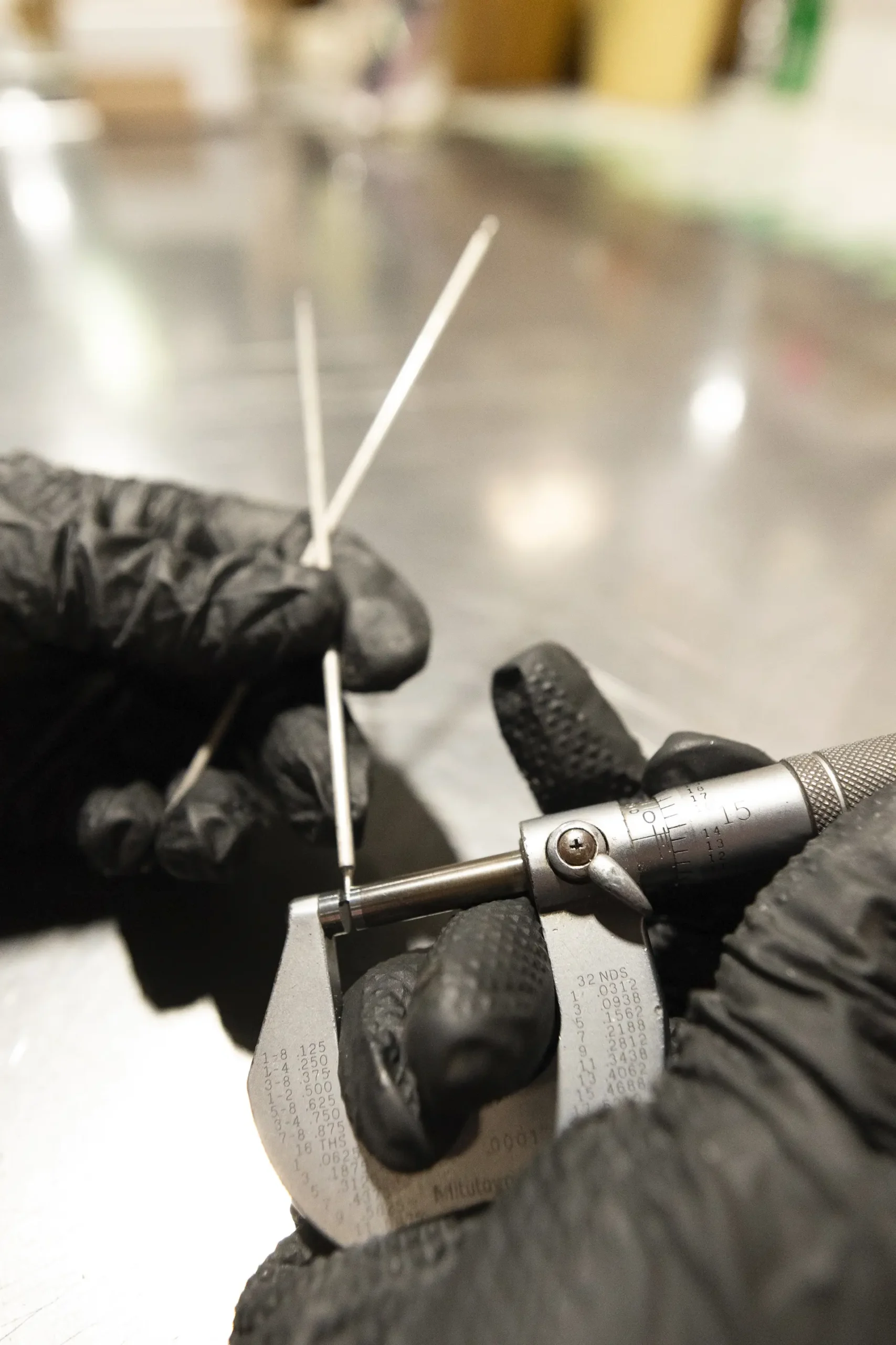 The Cold Heading Machine maintains tolerances of ±0.25 mm (0.010″) on pin length and ±0.025 mm (0.001″) on reduced diameters. Since the machine forms the pins mechanically, the wire must have a tensile strength between 60,000 psi and 75,000 psi (4218–5273 kg/cc²).