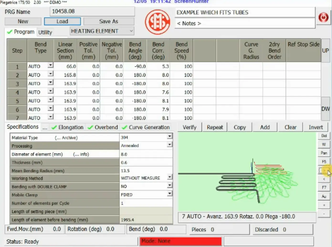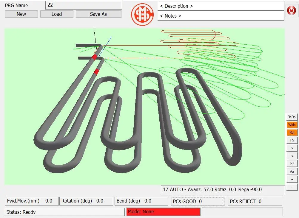Using OIM’s 3D-graphic programming software, operators simply enter the geometric data of the heating element. The machine automatically generates the bending program, leveraging previous bending experience stored in its database. Preset programs allow the machine to achieve accurate dimensional tolerances from the very first element, minimizing setup time and ensuring consistent, repeatable results.