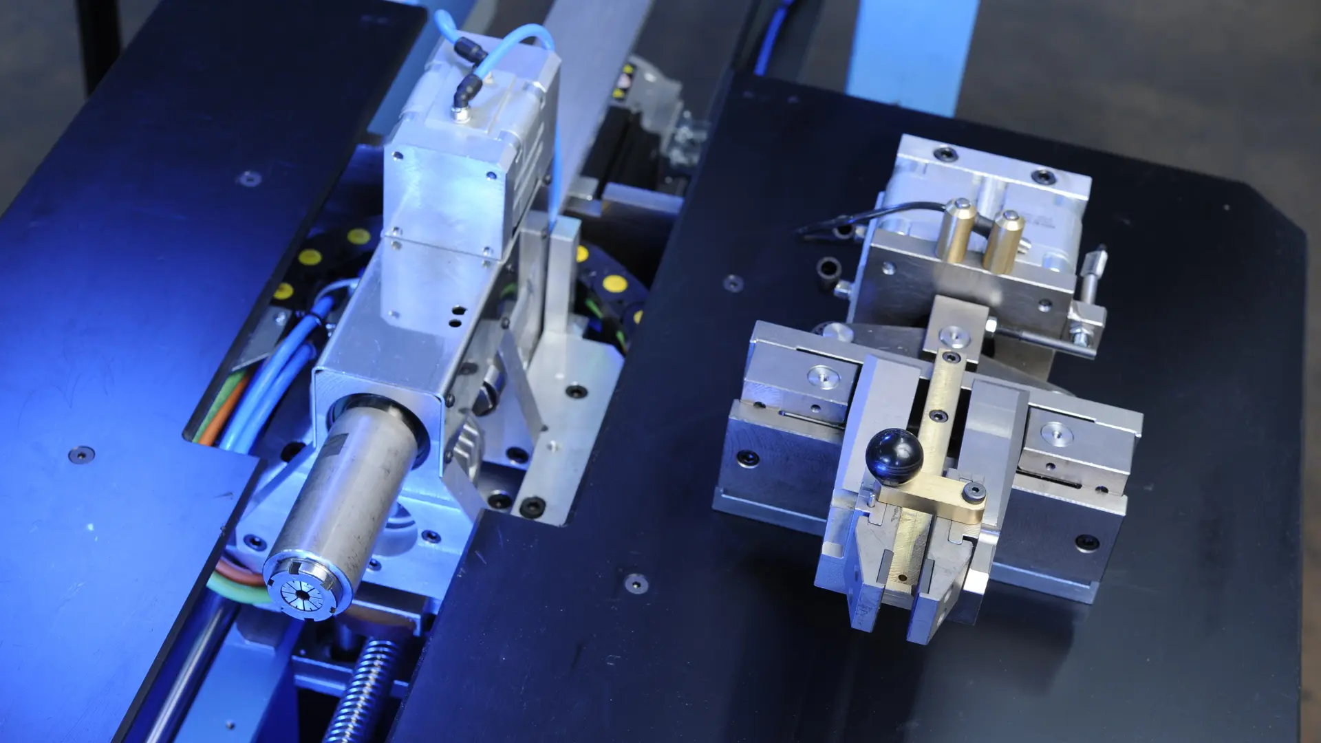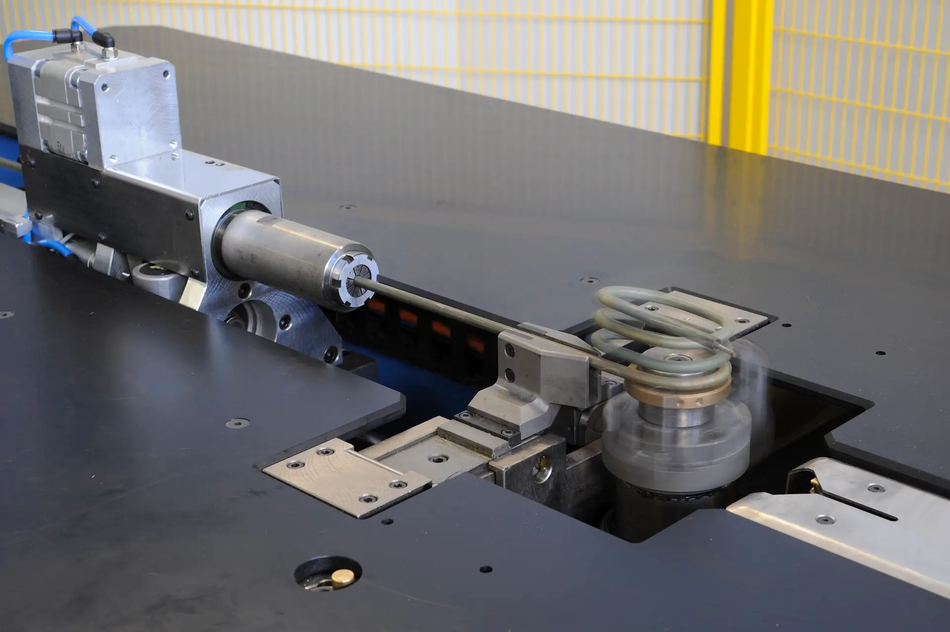 The traveling clamp is driven by a brushless motor (1st numerically controlled axis).