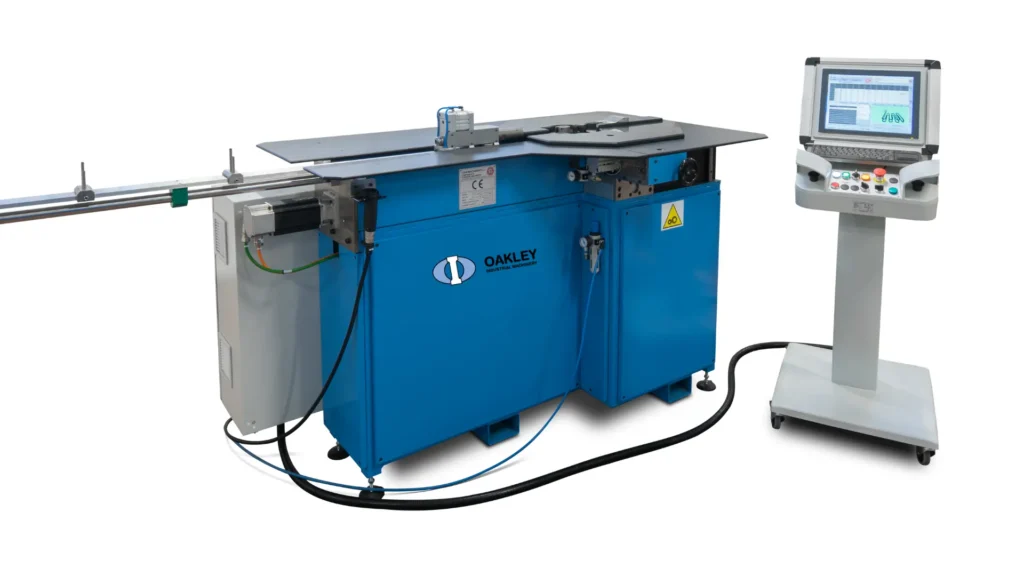 The numerically controlled universal bending machine from Oakley Industrial Machinery is a fully programmable solution for bending heating elements with one or two bending units. It can perform automatic bending on a single plane or multiple planes, accommodating a wide range of shapes, sizes, and bending angles.