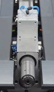 The traveling clamp is driven by a brushless motor (1st numerically controlled axis).