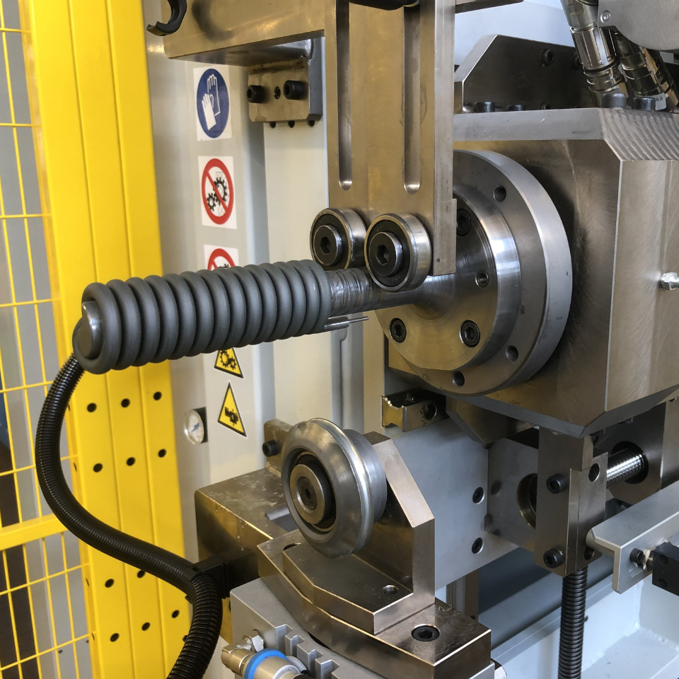 Graças a um dispositivo específico, a máquina é capaz de realizar dobras com pequenos raios em elementos de aquecimento elétricos aletados.